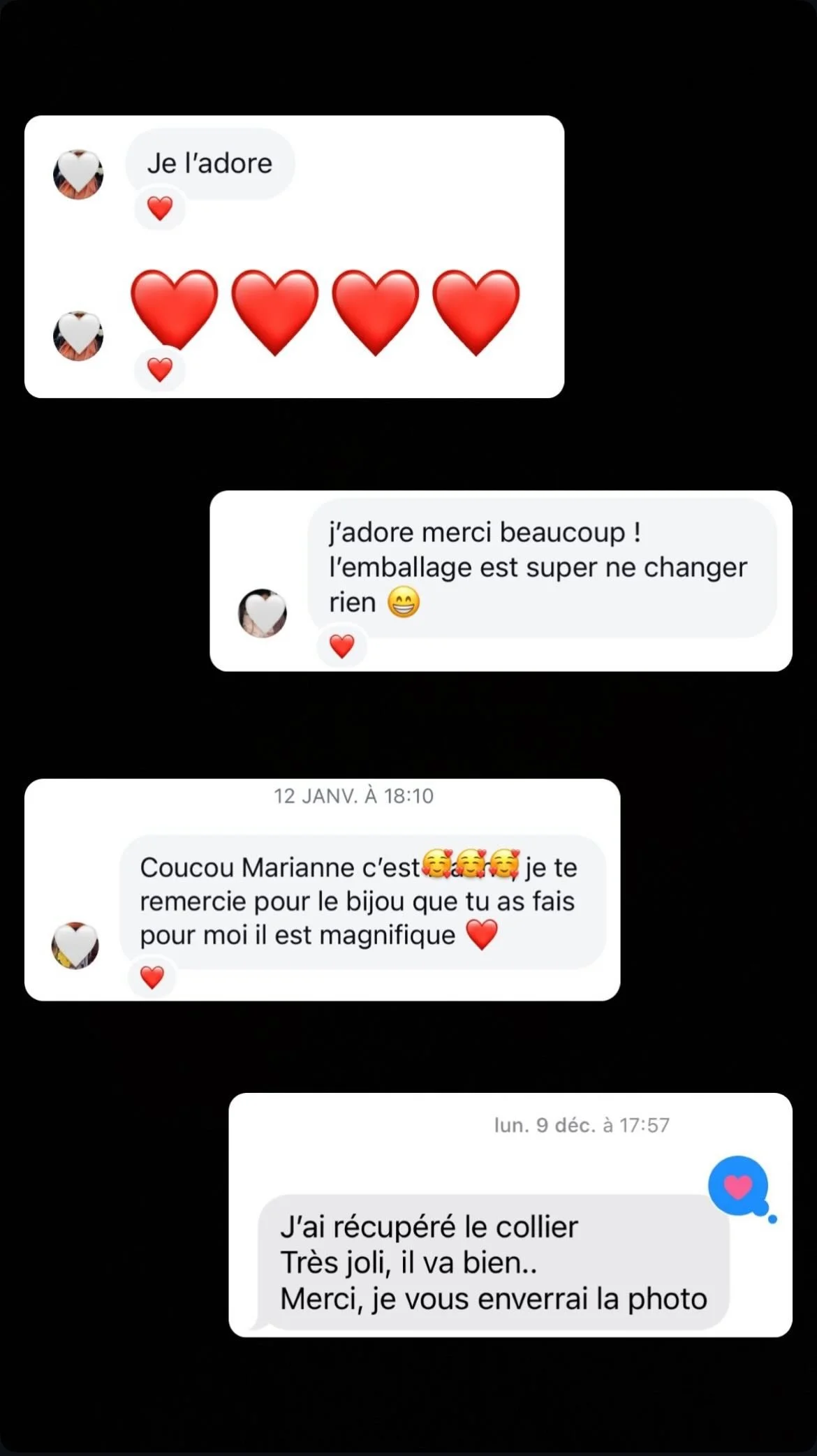 “Mes bijoux prennent vi grâce à vous. Merci de les faire rayonner”